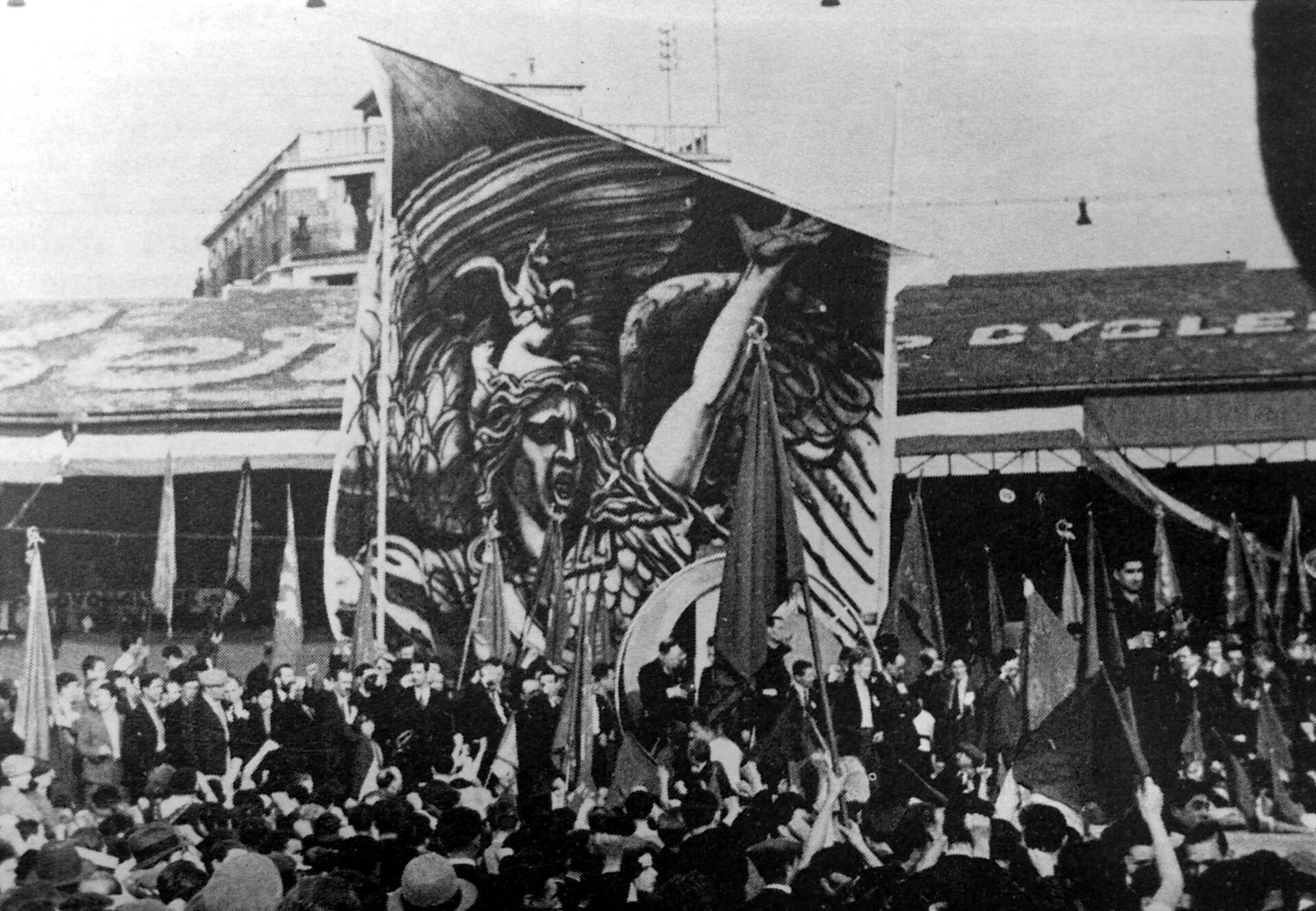 Demonstration afholdt af Front populaire mod fascisme i 1936. Wikimedia Commons